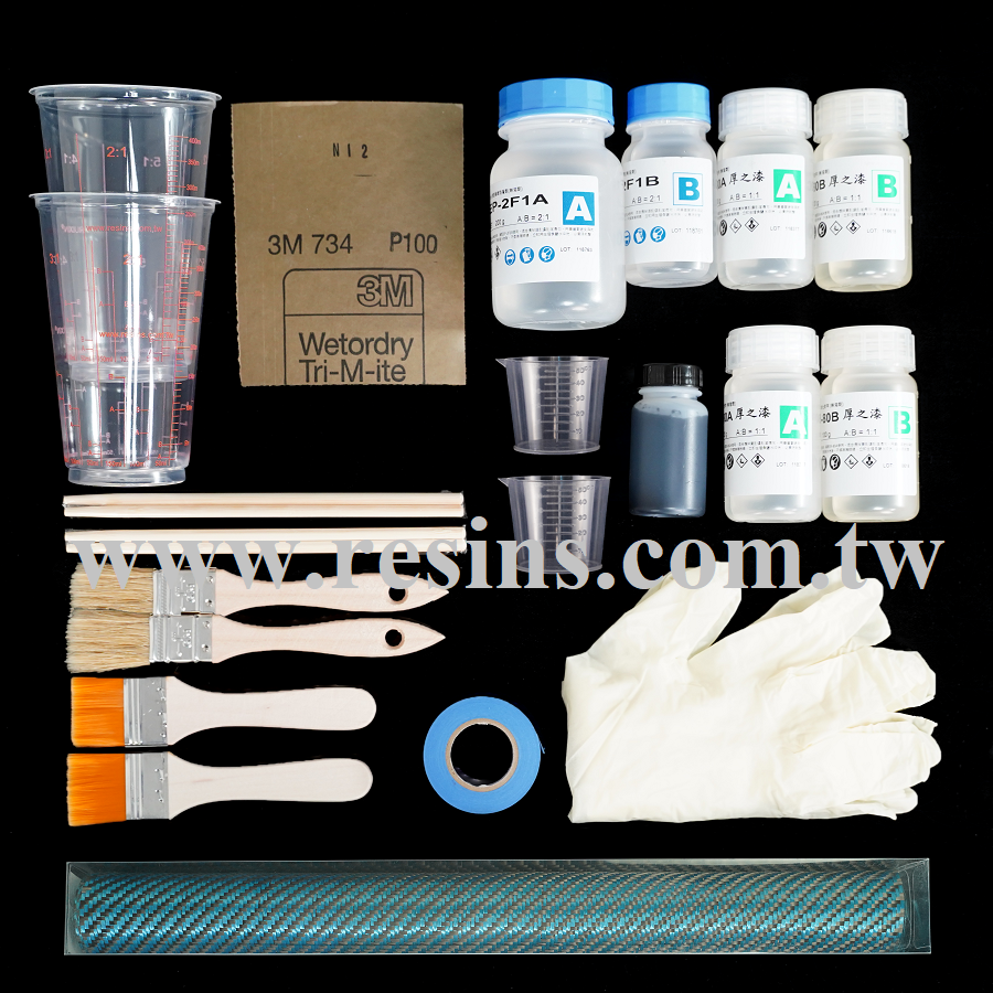 相同體積下,碳纖維製品的重量僅是鐵的1/4,甚至比鋁合金還輕,扭斷強度卻是鐵3倍以上。 最早使用碳纖維(竹碳纖維)的人就是發明電燈泡的愛迪生。1879年他為了找尋可通電的燈絲, 雖然最後沒有被愛迪生採用,但也開闢了科學的新紀元。碳纖維崛起於50年代–美國、蘇俄太空競賽, 需要質輕而機械強度高的材料,碳纖維因運而生。 Liquid Crystal Polymer(LCP) LCB是世界唯一商業化之熔紡液晶纖維 斷裂強度(Breaking Tenacity) 30 g/d優於克維拉(Kevlar)的23.6 g/d, LCB屬於芳族聚酯,由液晶聚合物通過熔融擠出工序紡成長絲 此工序引導分子沿著纖維的軸向分布,從而生成高抗拉的纖維, 主要性能:高強度重量比、良好的抗蠕變性、高耐磨性、良好的彎曲抗疲勞性、最小吸濕率。 斜織纖維布的光線折射呈現出迷人的光澤,由其是包覆在流線的車殼,或是物件上。 包覆套組,ER-80可做底膠和金油,底膠黏著性強、金油透明厚亮清澈,可厚塗不易垂流,成品不抛光也很光亮。 EP-2F1浸潤膠滲透性佳、以上皆為無毒無臭材料,可在室內DIY製作。